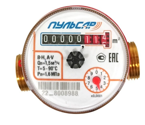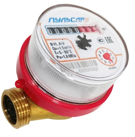 204_ Счетчик воды универсальный 1/2' (Ду15), Qn=1,5 м3/час, L=80мм, (присоединители с обратным клапаном в комплекте) арт. Р00073868 Пульсар