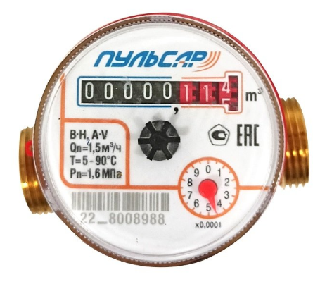 213_ Счетчик воды универсальный 1/2' (Ду15), Qn=1,5 м3/час, L=80мм, (без присоединителей) арт. Р00073863 Пульсар