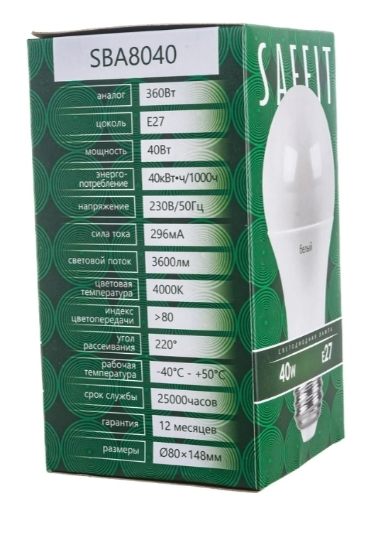 167_ Saffit ЛОН А80 E27 40W(3600Lm) 4000K 4K матовая 148х80 арт. SBA8040 55201 ш/к 4627117046682